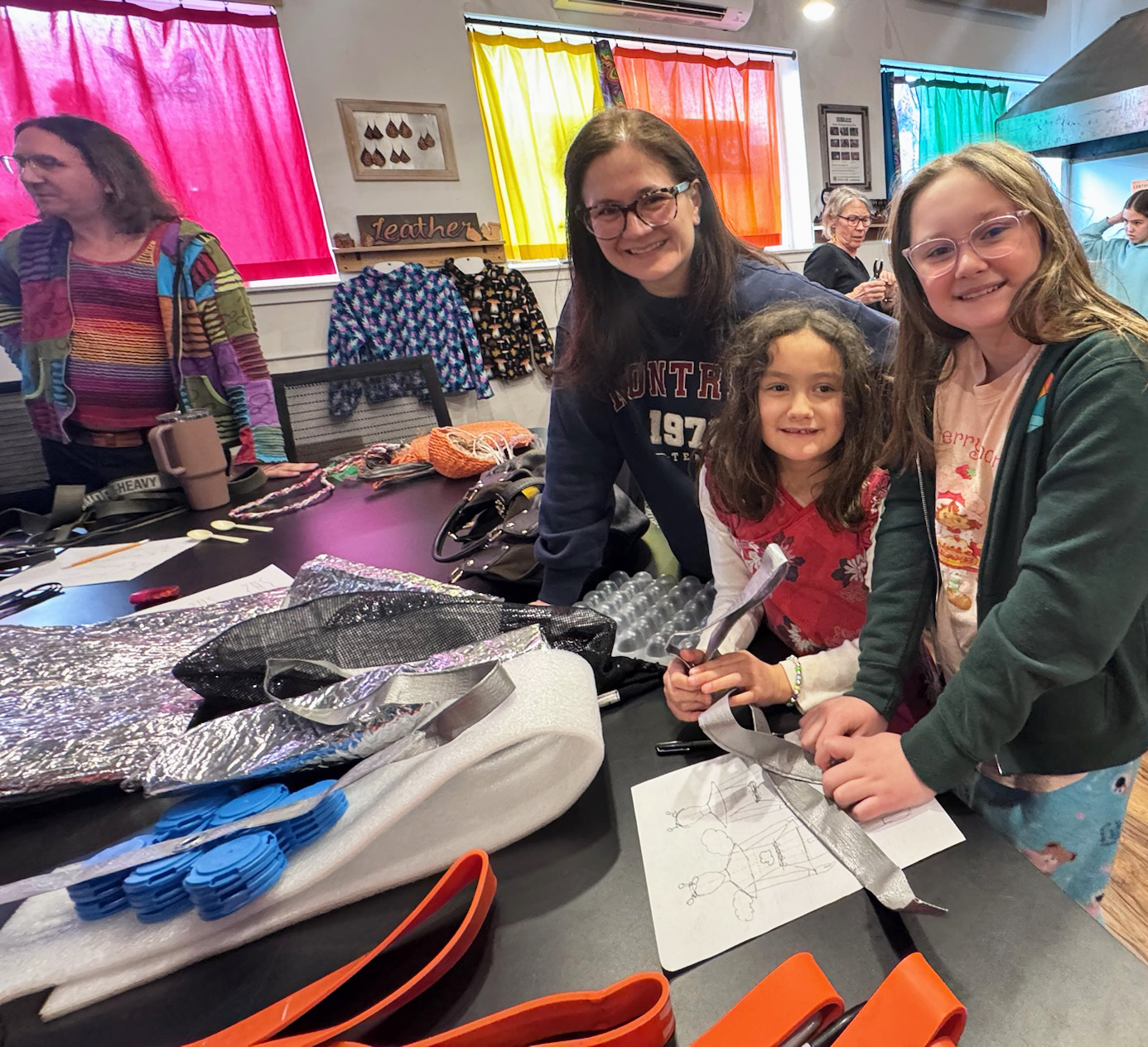What an inspiring afternoon at DIYcave working with 12 burgeoning trash fashion designers! With 6 mentors these creatives explored the essence of materials, created patterns, experimented with techniques, and moved their visions forward. We can’t wait to see what they create!
