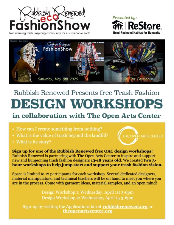 * (The April 15th OAC workshop is after the show submission deadline, but can help finish a garment that has been submitted, or continue to develop as a trash fashion designer!)