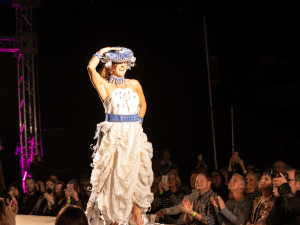 Rubbish Renewed has developed into a showcase for talented community artists. Many designers submit year after year inspired to up their game in sustainability, material manipulation, and style each event. Pieces tell a variety of stories like the challenges of medical waste, excessive packaging from our mail order and coffee on-the-go obsessions, and how to transform discards into truly wearable art.