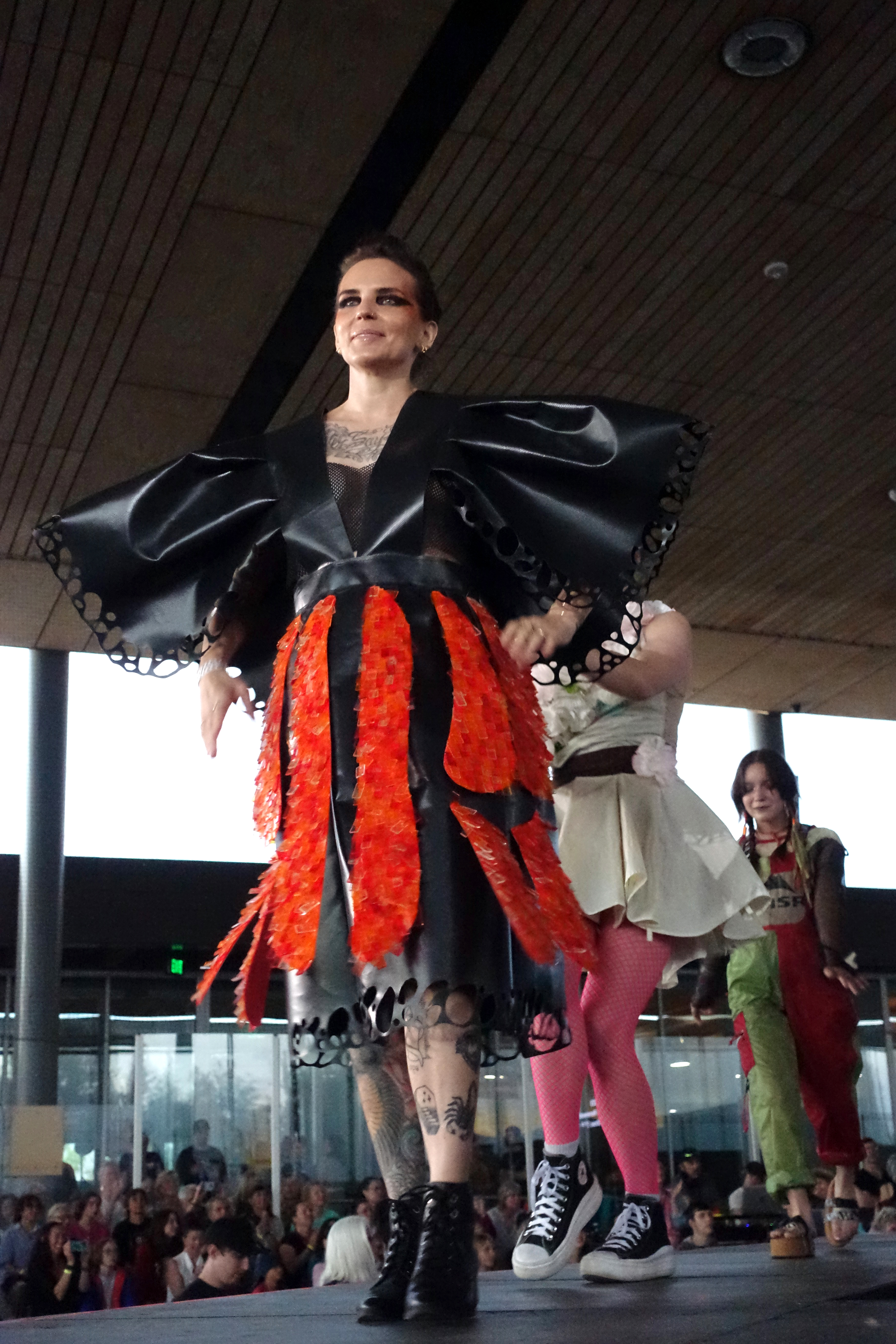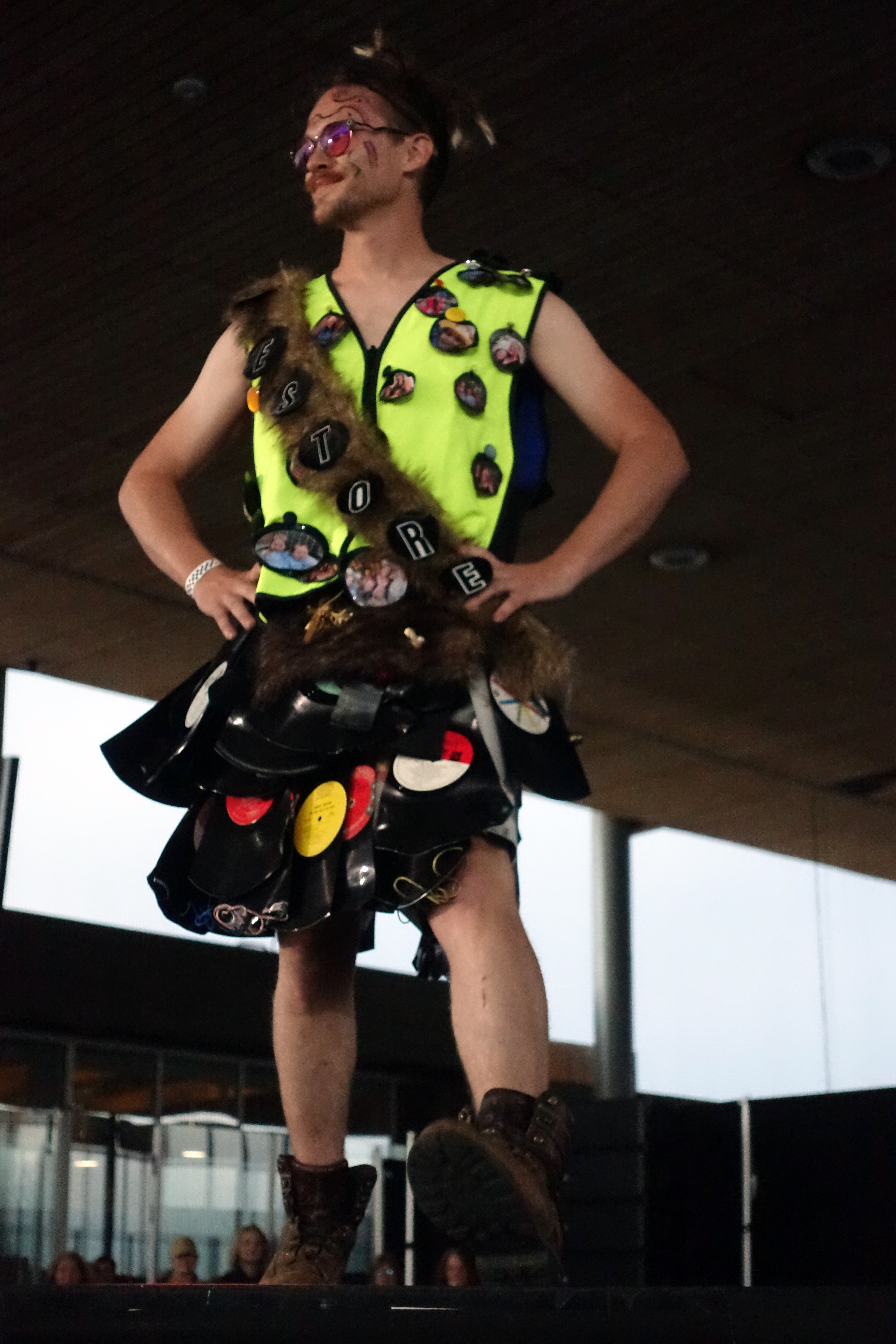 Year 1: there was 1 runway show with a total of 23 garments (compared to 57 split into 2 shows for 2020), and one designer made 5 of them! Diverse materials, from the launch of fused plastic as fashion, to beanie babies turned into a faux fur coat, graced the runway.
