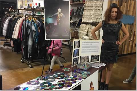 On Friday, December 2nd, the Bend community came together at Cosa Cura to take pledges for the planet. People asked, “What one action can I take to lower my impact on the planet?” Pledges were written directly on discarded CD’s, which will be integrally pieced in the 2017 “Community Garment.”