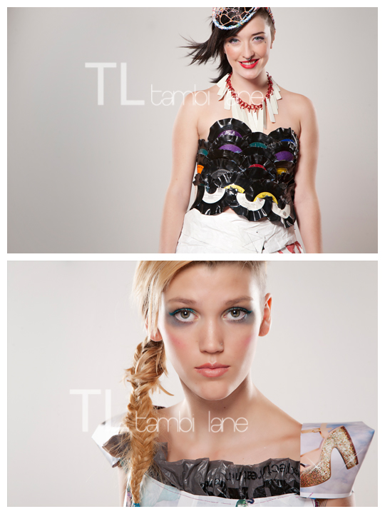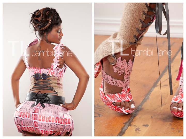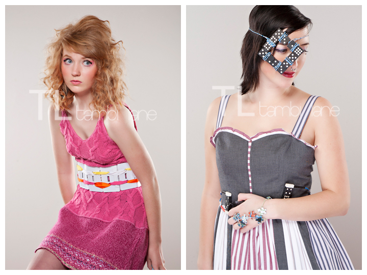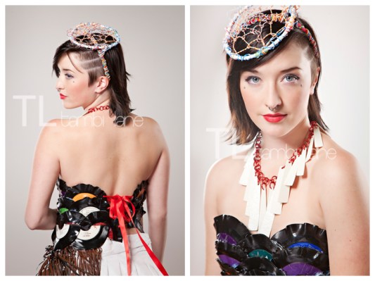 Find them in these incredible trash fashion photos taken last Saturday night at Tambi Lane Photography – the first public Rubbish Renewed preview photo session.  Not only cutting edge in style, these garments re-envision trash into sustainable, wearable art.  Come out tomorrow night (December 2nd) for 1st Friday.  You may catch a glimpse of a few pieces making their red carpet debut. Find them around town or at TBD Loft for this year’s Trash Transcendence Community Created Garment.