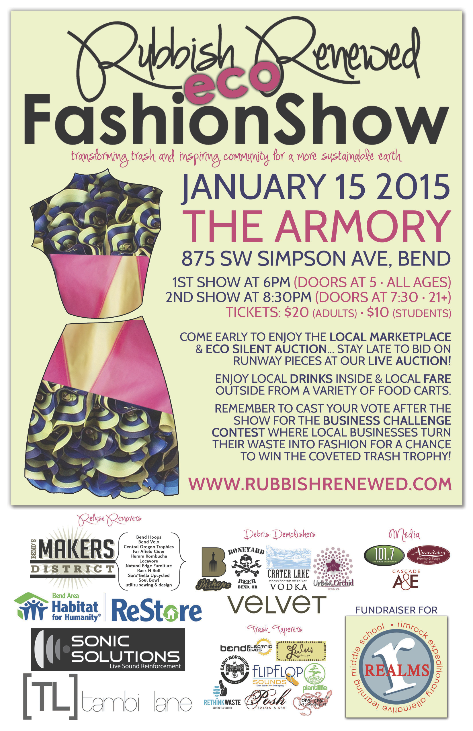 Join other socially conscious businesses and individuals for an evening of sustainable fashion, showcasing styles that the future demands. We invite you to reconsider the value of trash and celebrate the creative, sustainable spirit of Bend.