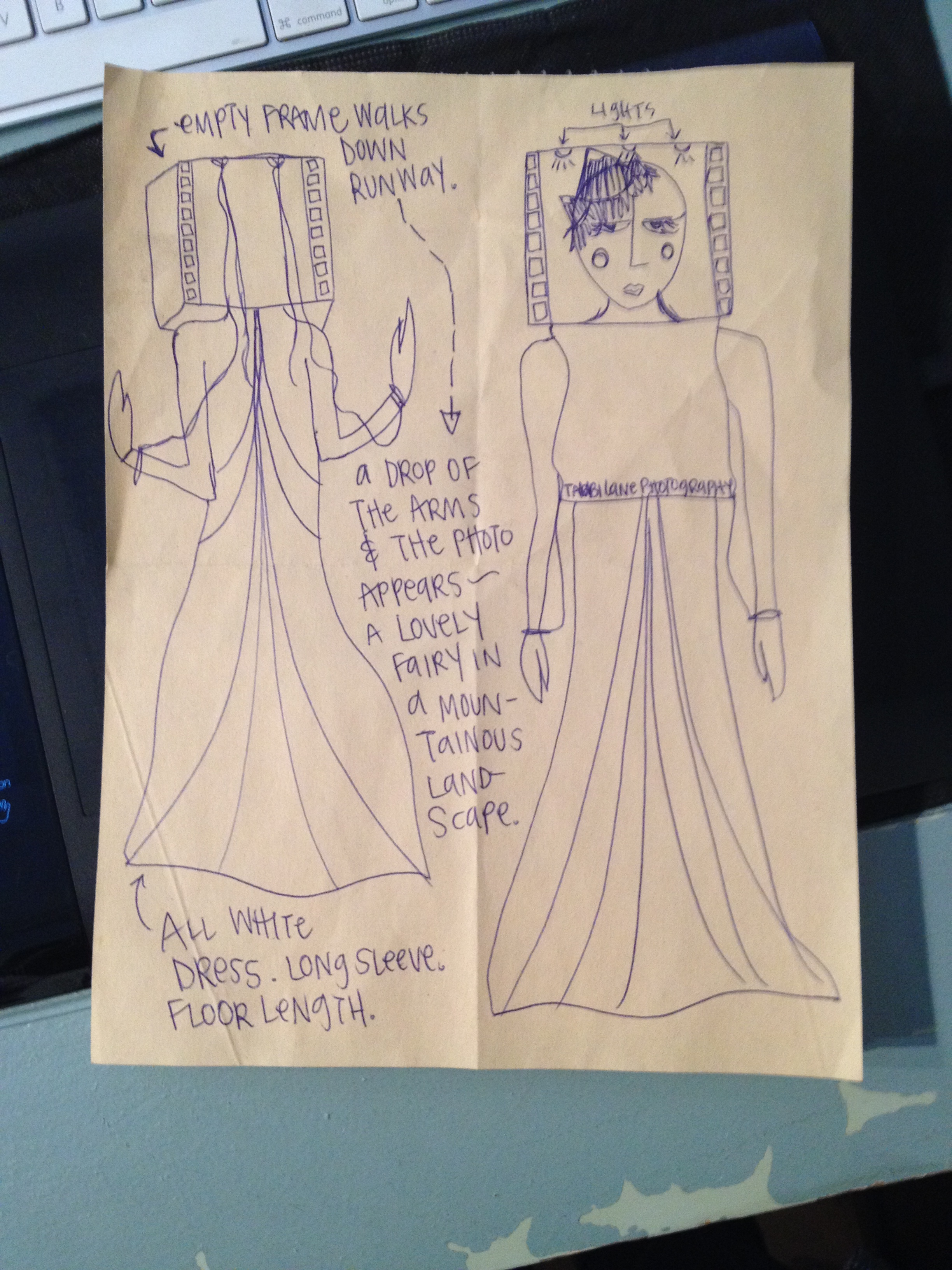Artist sketch by designer Allison Murphy of the dress she designed for Tambi Lane Photography Studio as part of the 2014 Business Challenge