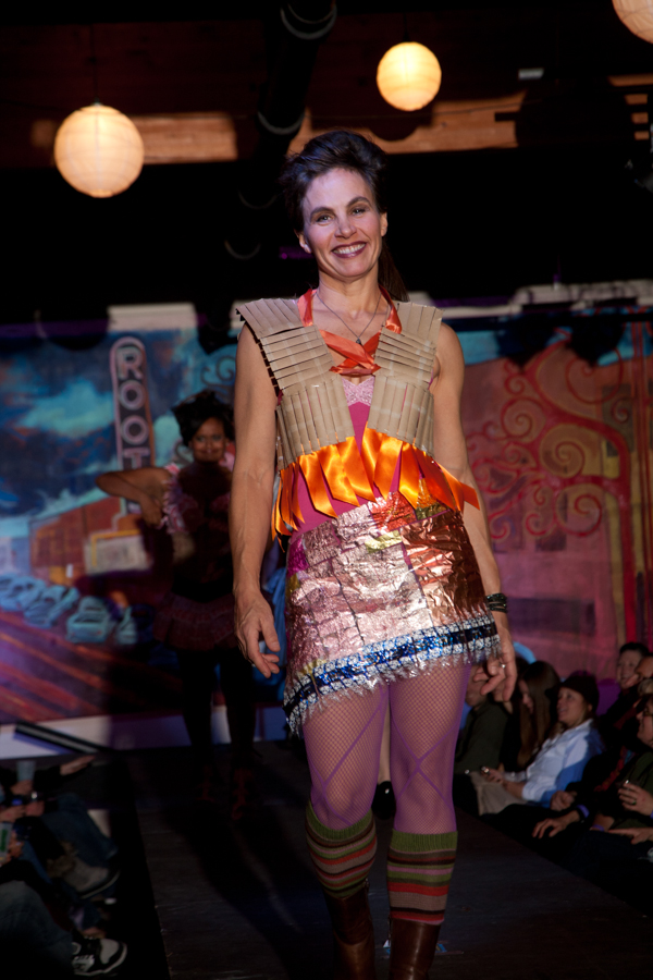 Materials: Skirt – Brown Grocery Bags, Shirt – Old Tights