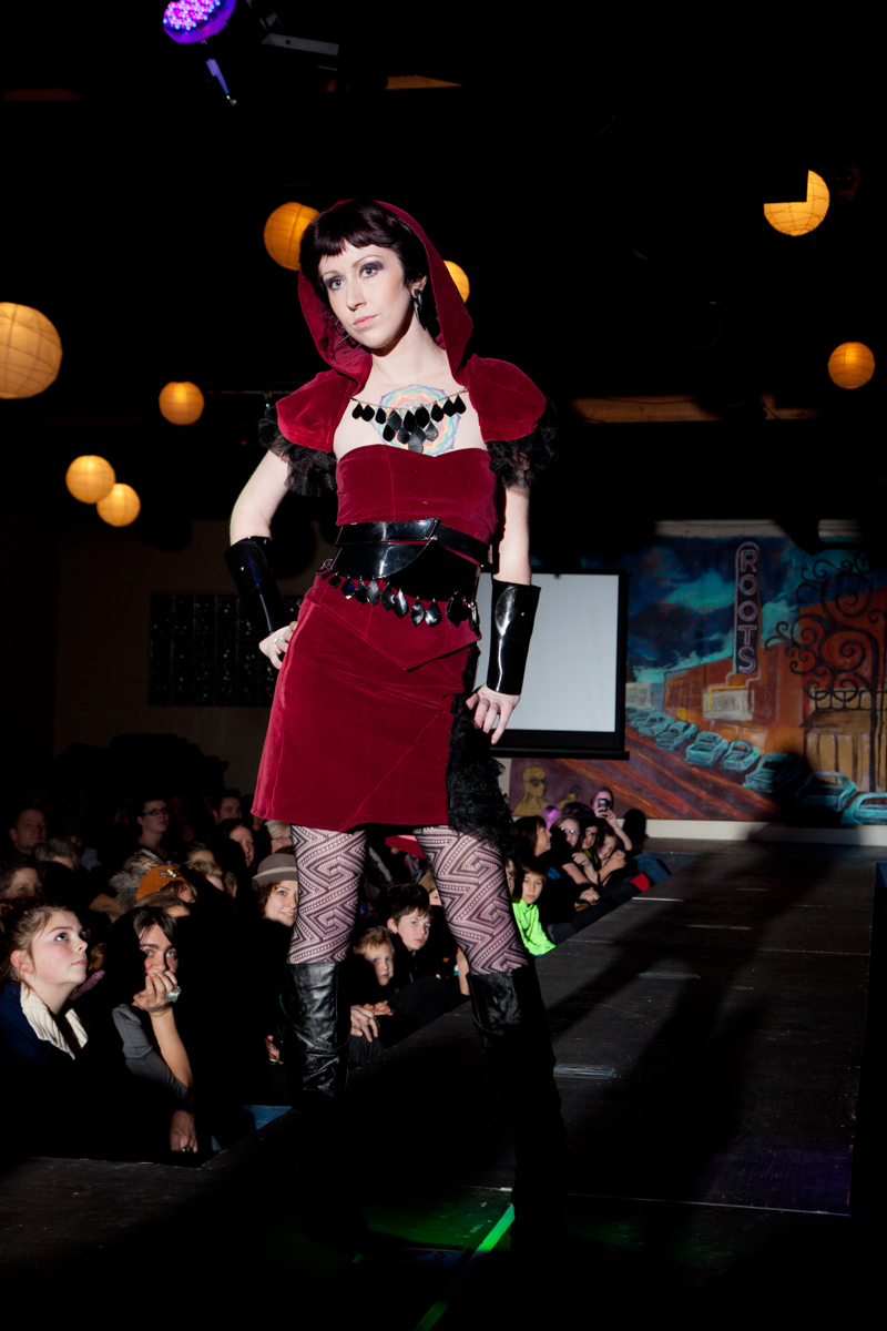 Materials: records, velvet curtain, old xmas ribbon, torn petty coat