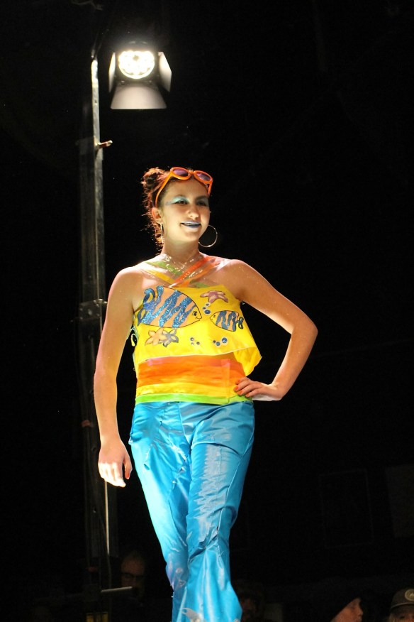 Materials: Worn out waders & tent, rescued bubble wrap, scavenged car seat cover