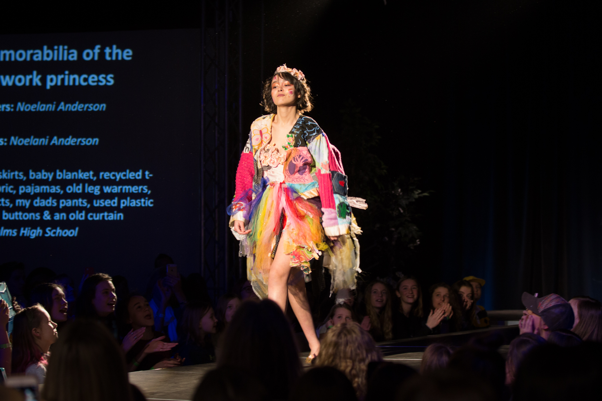 Materials: Repurposed old skirts, baby blanket, T-SHirts, pajamas, leg warmers, dad’s pants, Plastic beads & buttons School: Realms High School