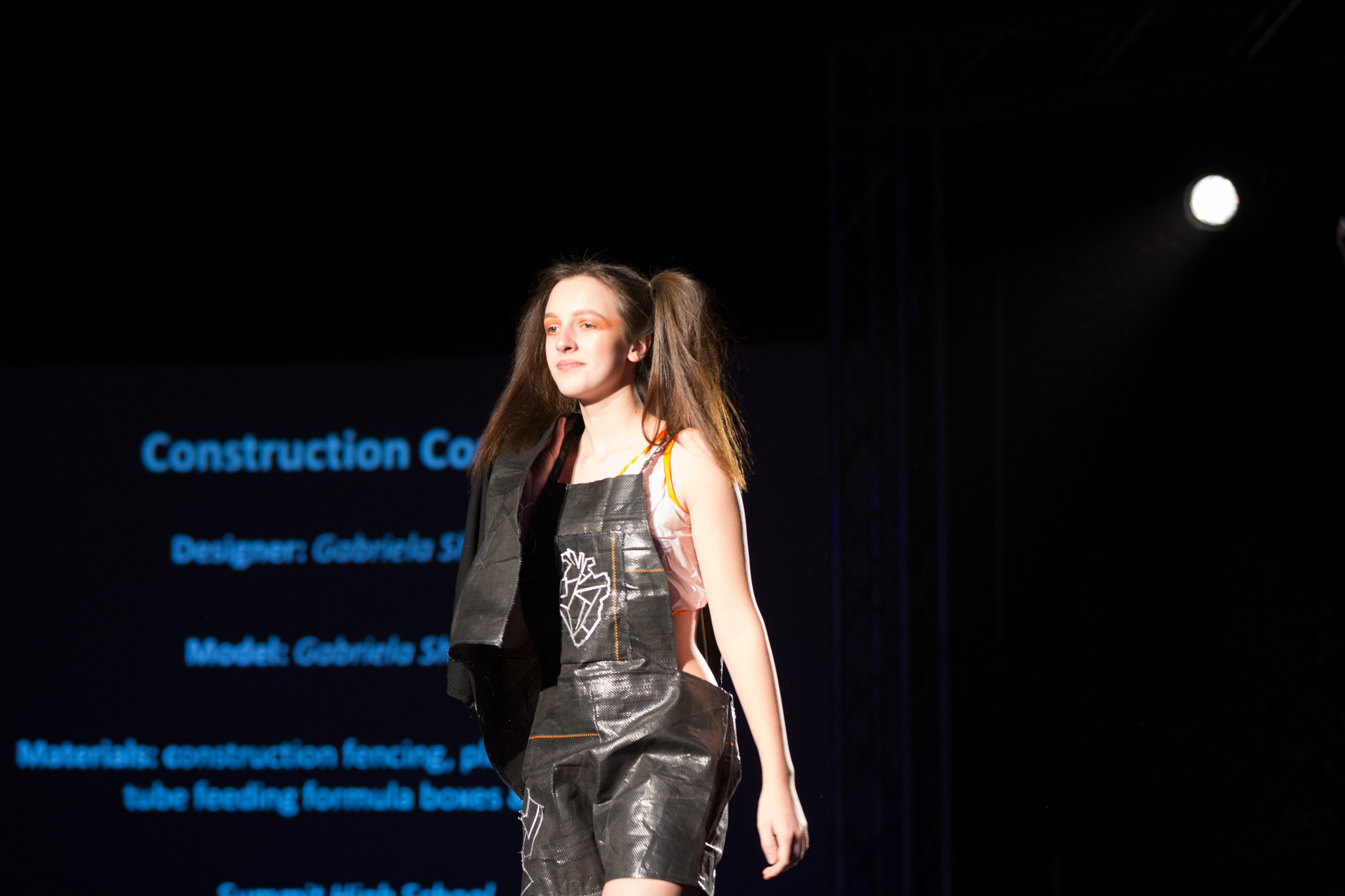 Materials: Construction fencing, plastic packaging, tube feeding formula boxes School: Summit High School