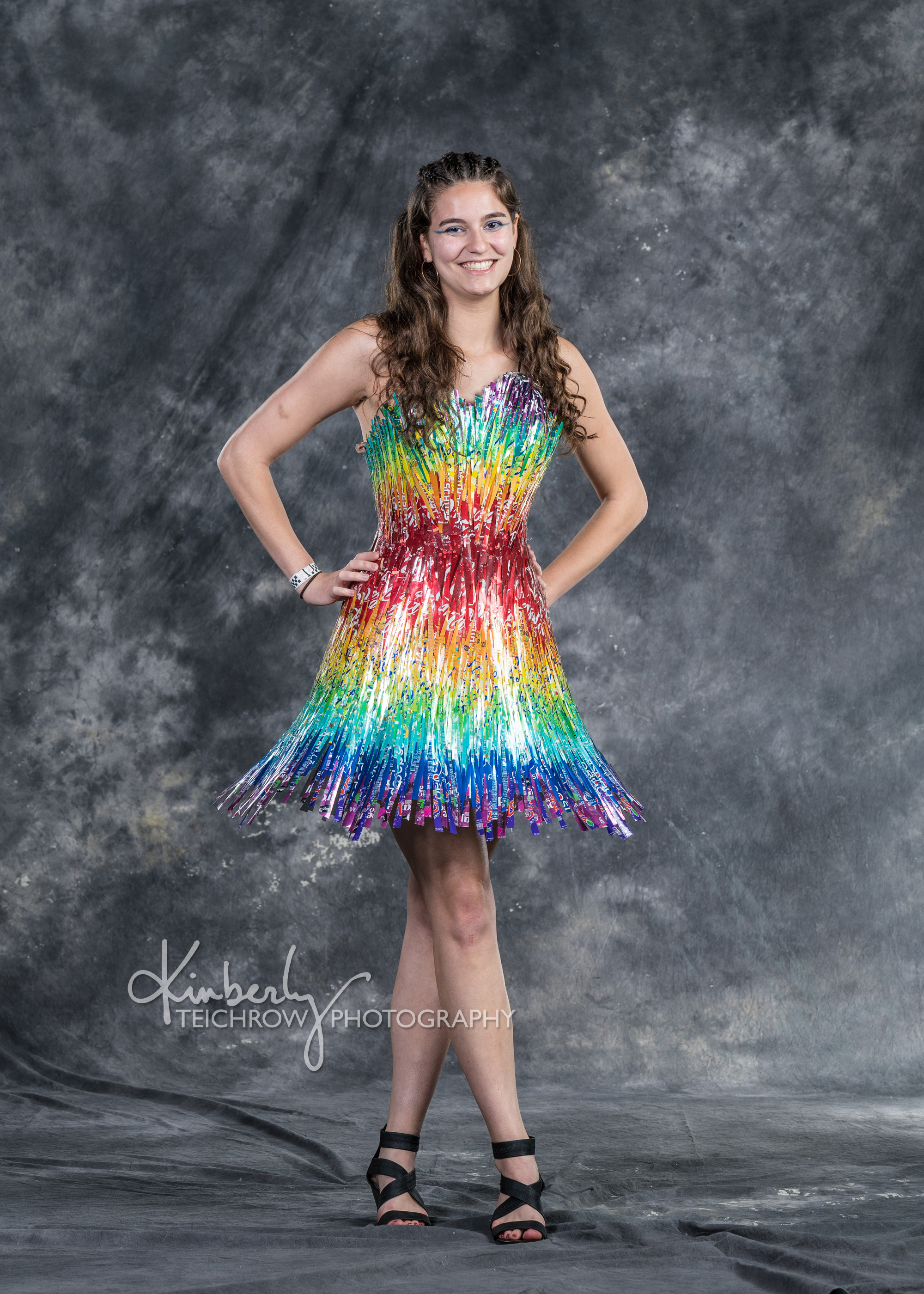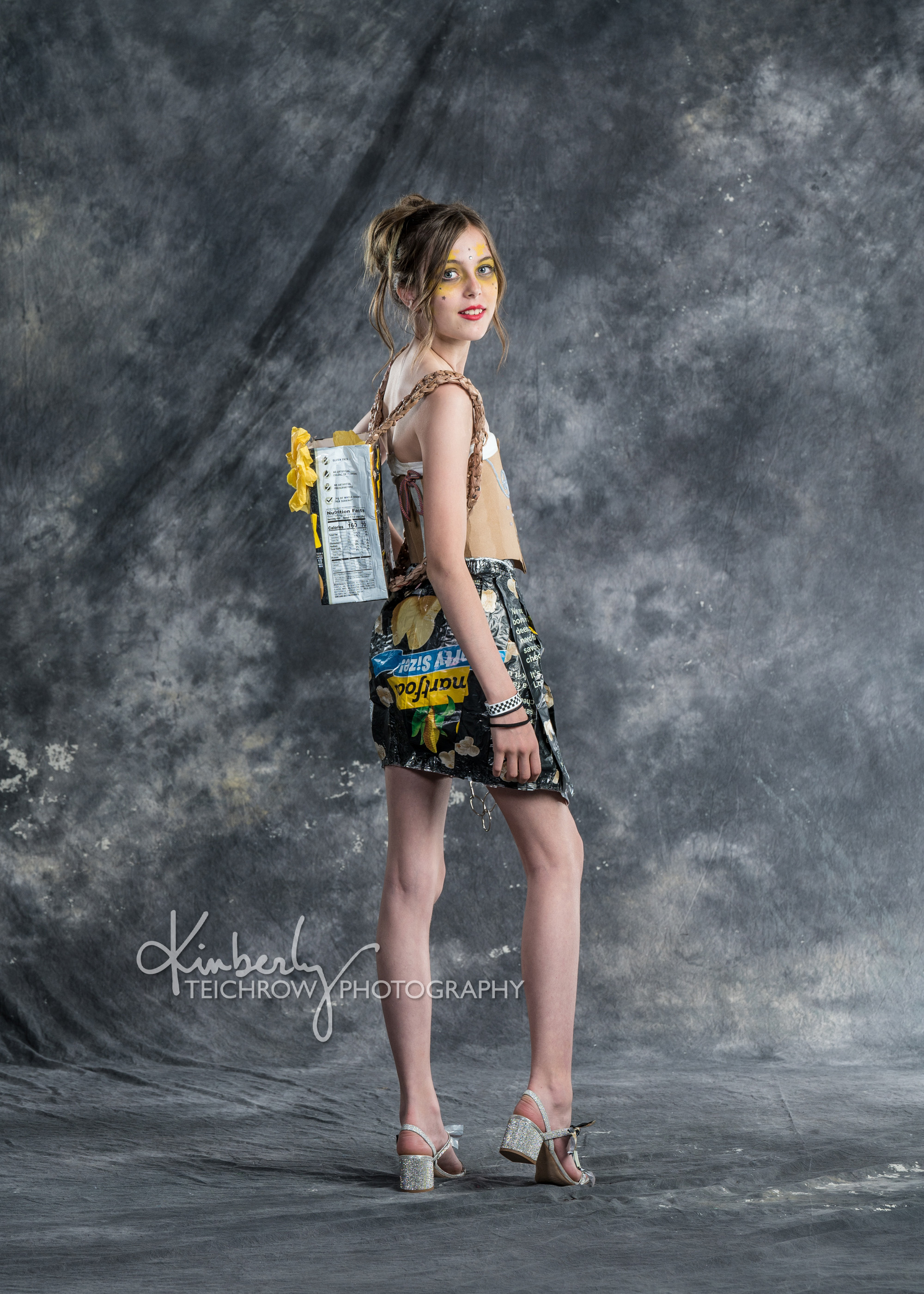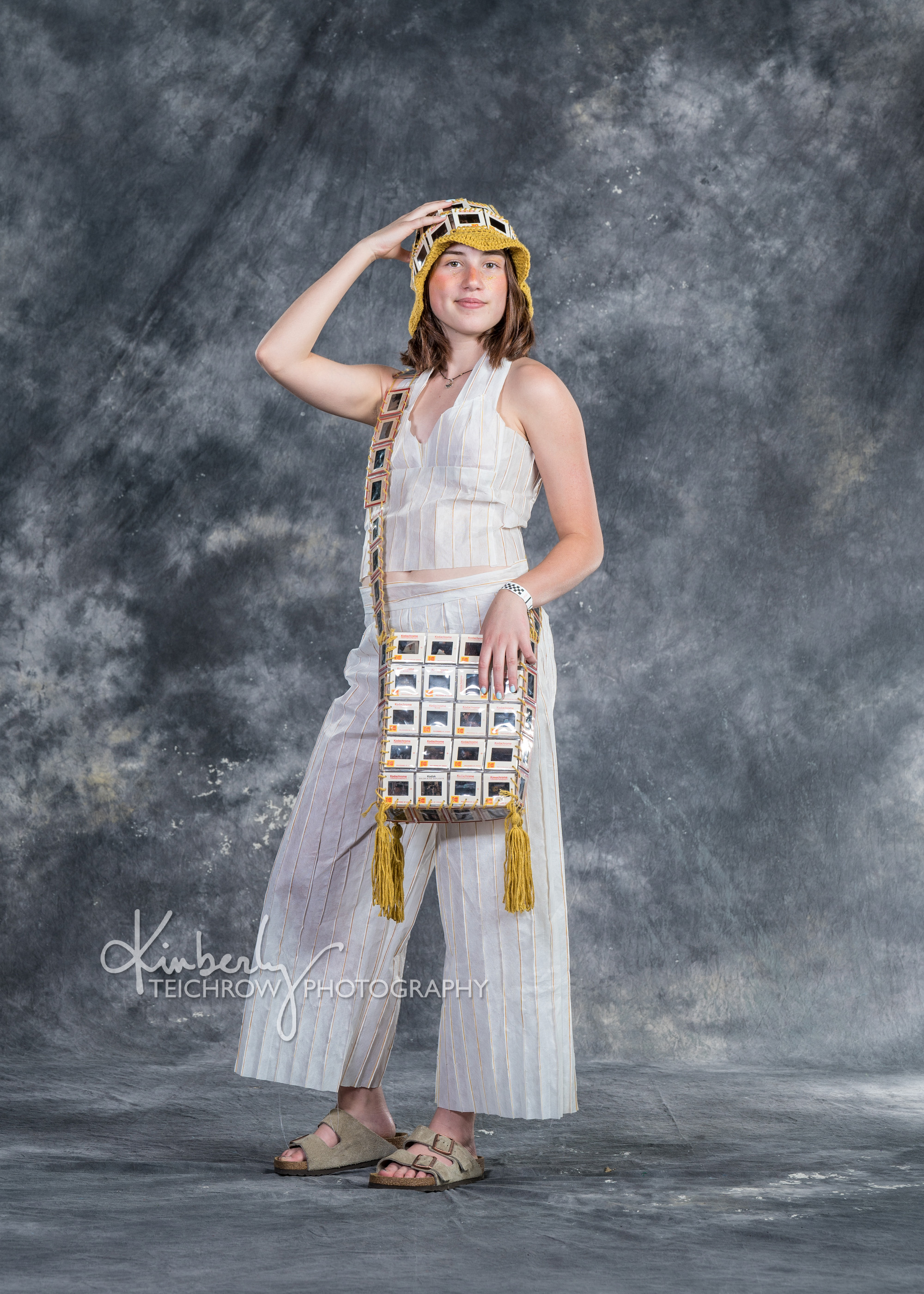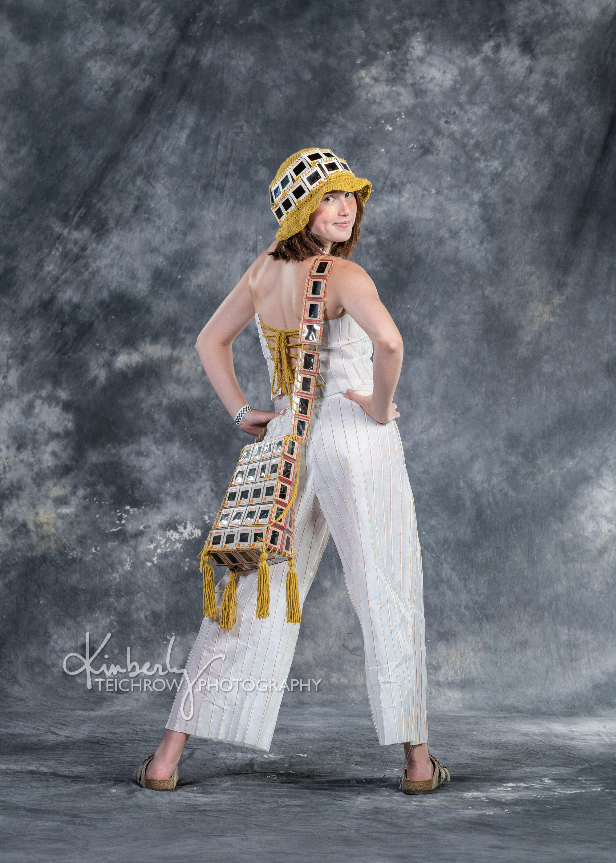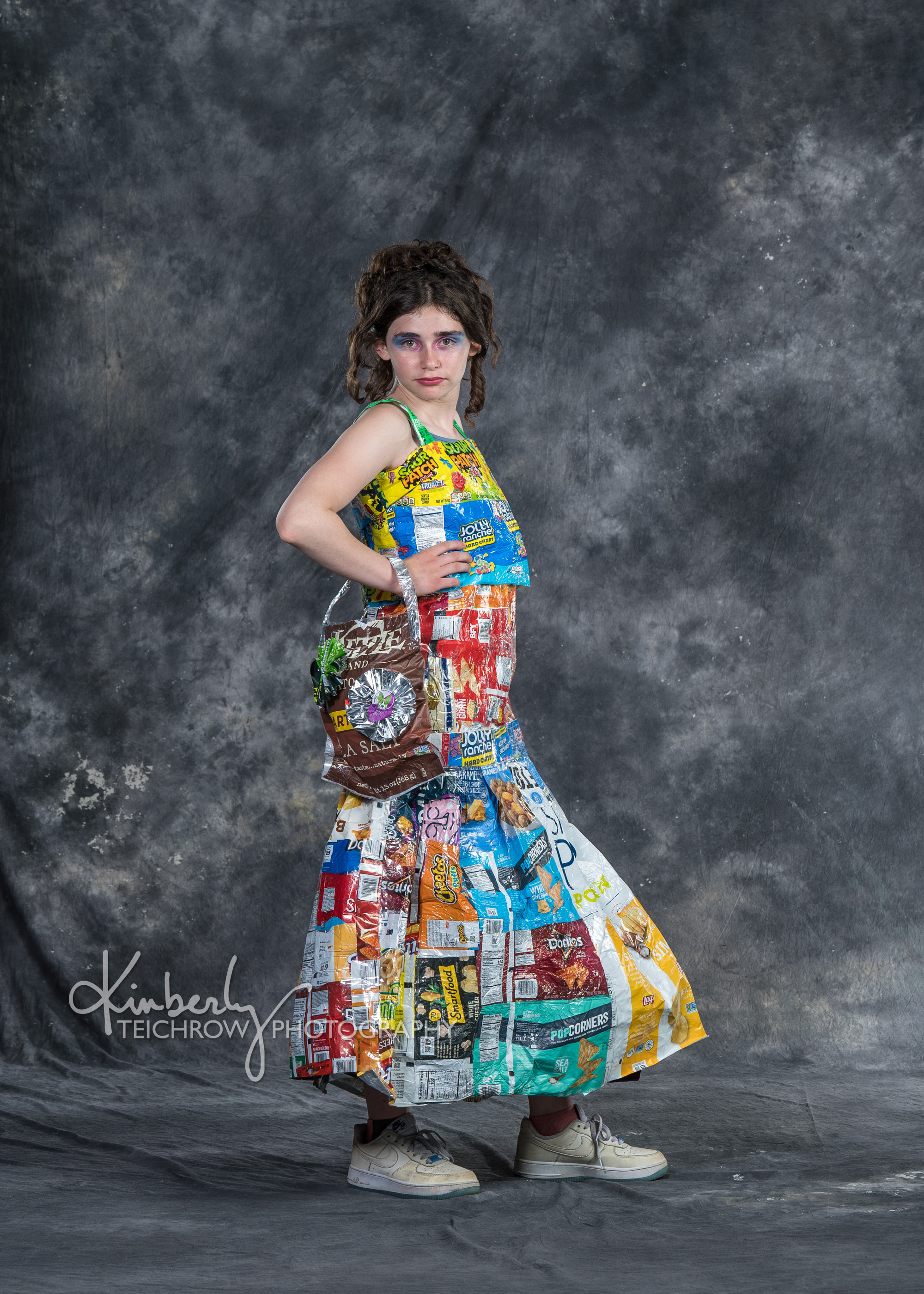 Designer/Model: Addison Sandrow Materials: Used chip bags – Bend High School