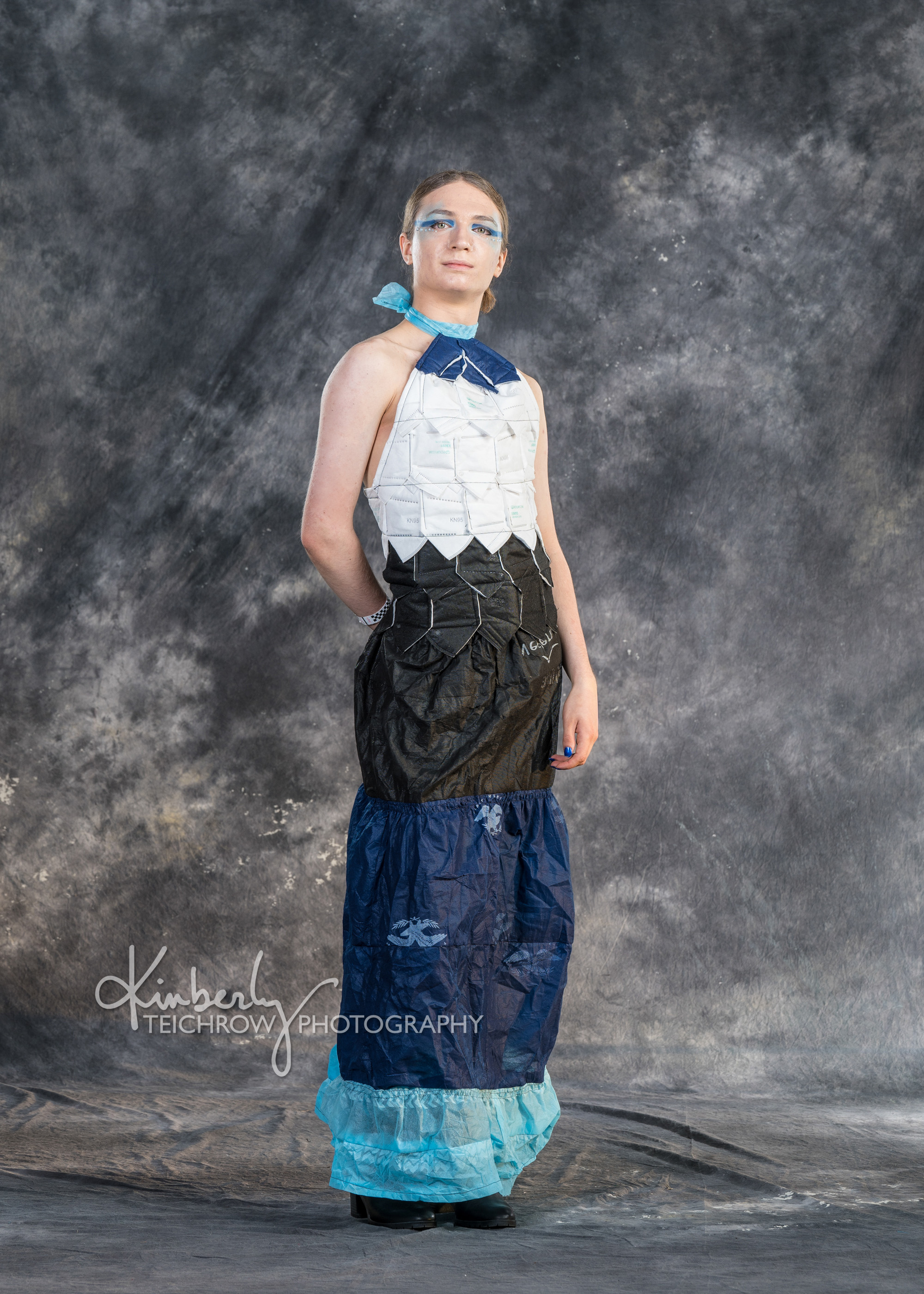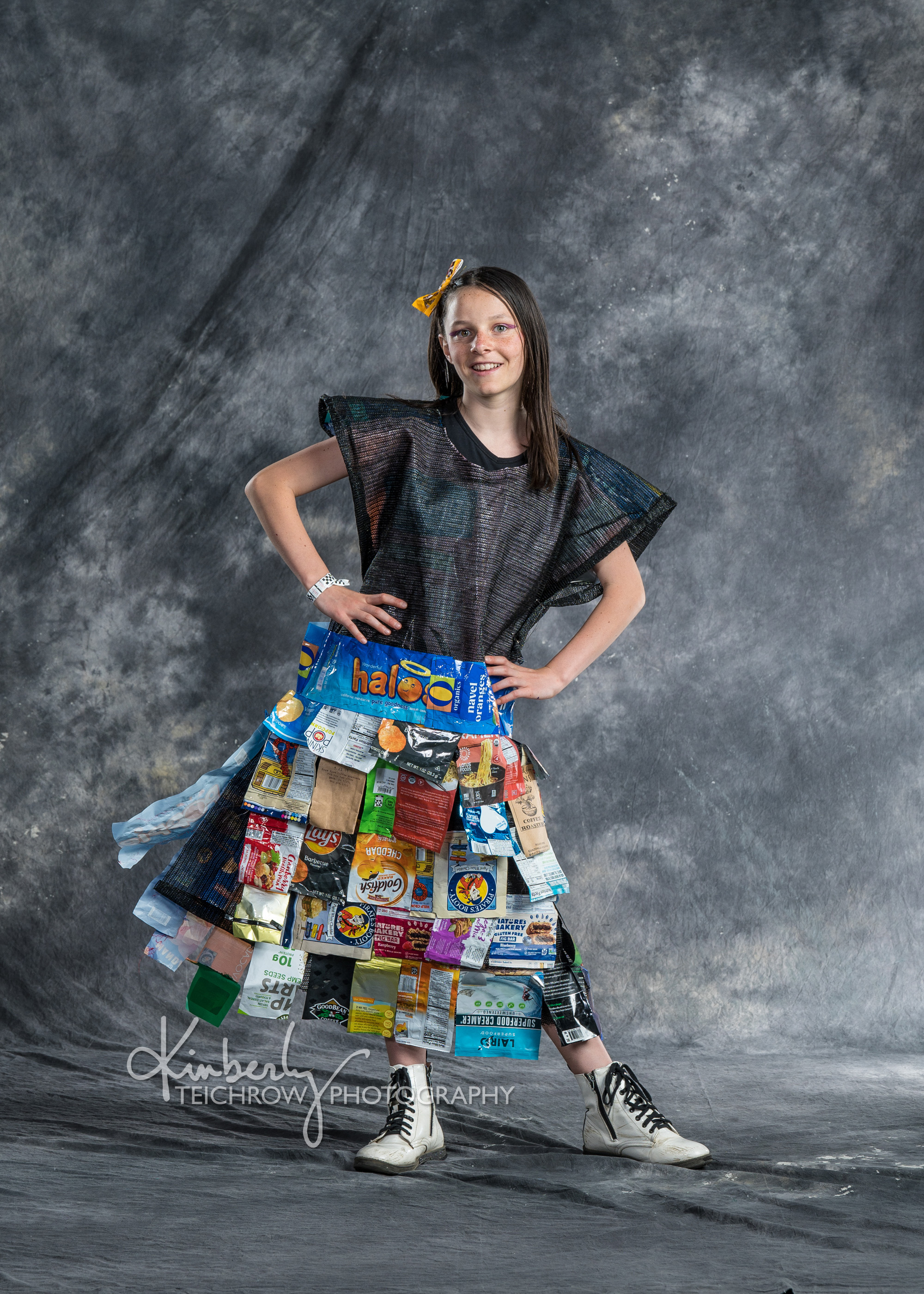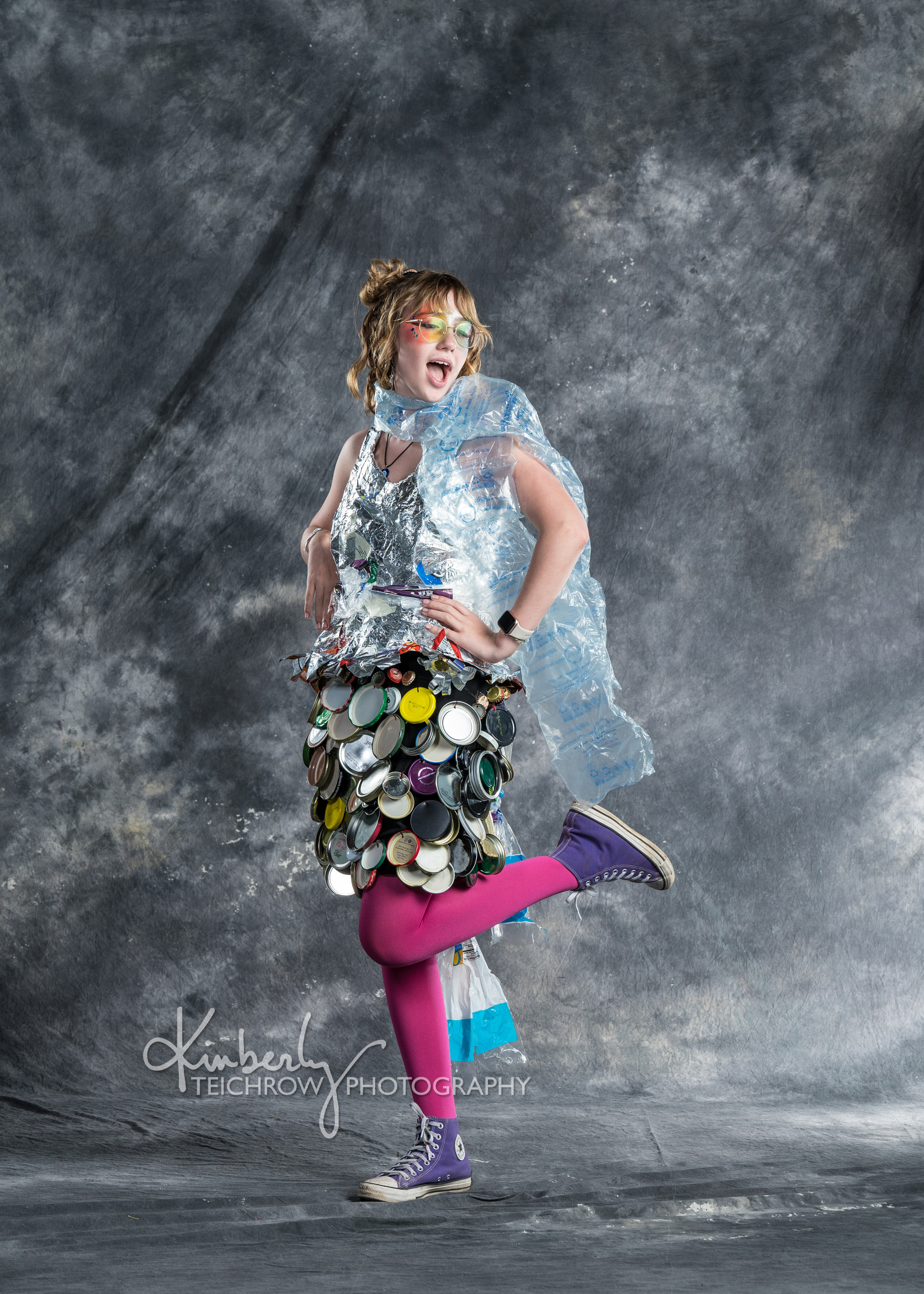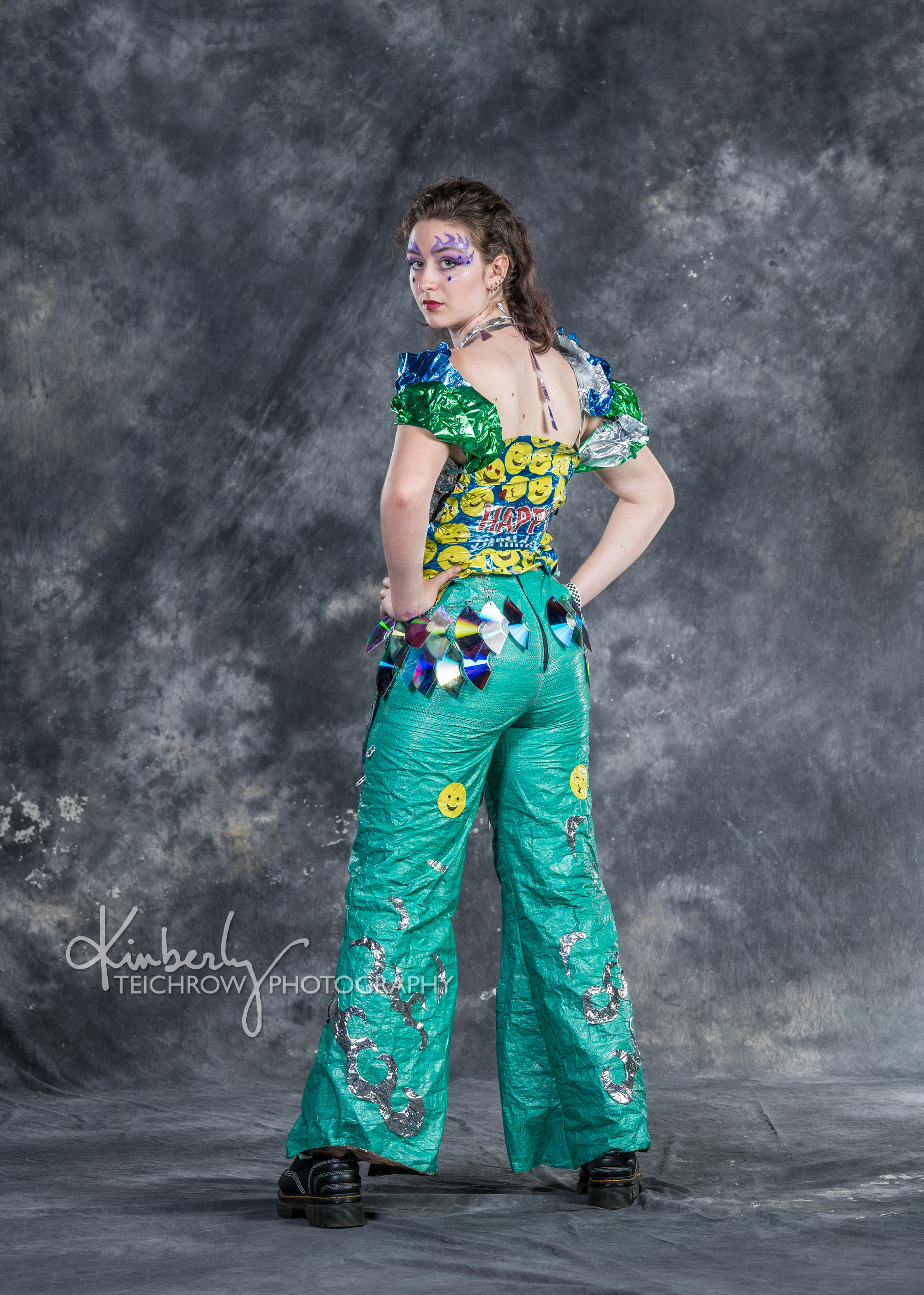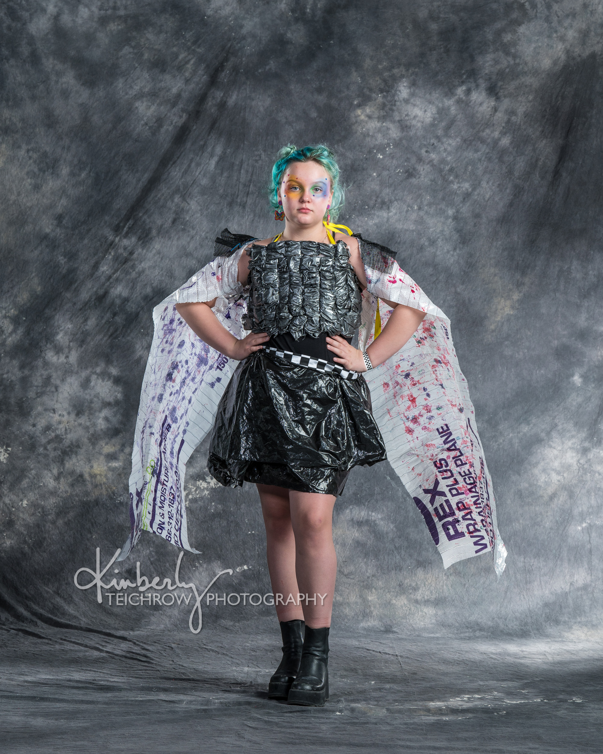 Designer/Model: Nevaeh Bennett Materials: Plastic garbage bag, bubble wrap, other disposable plastics – Realms Middle School
