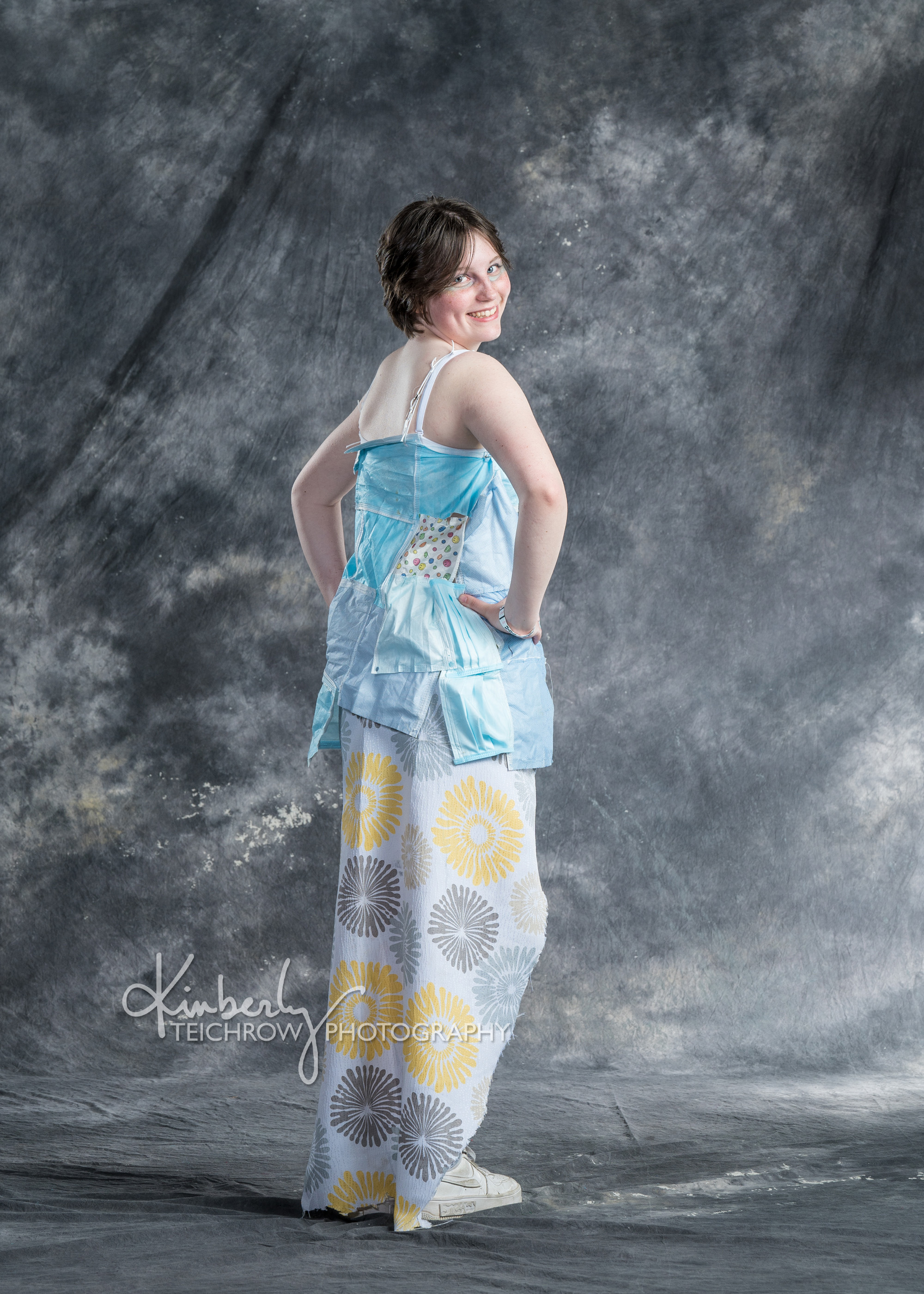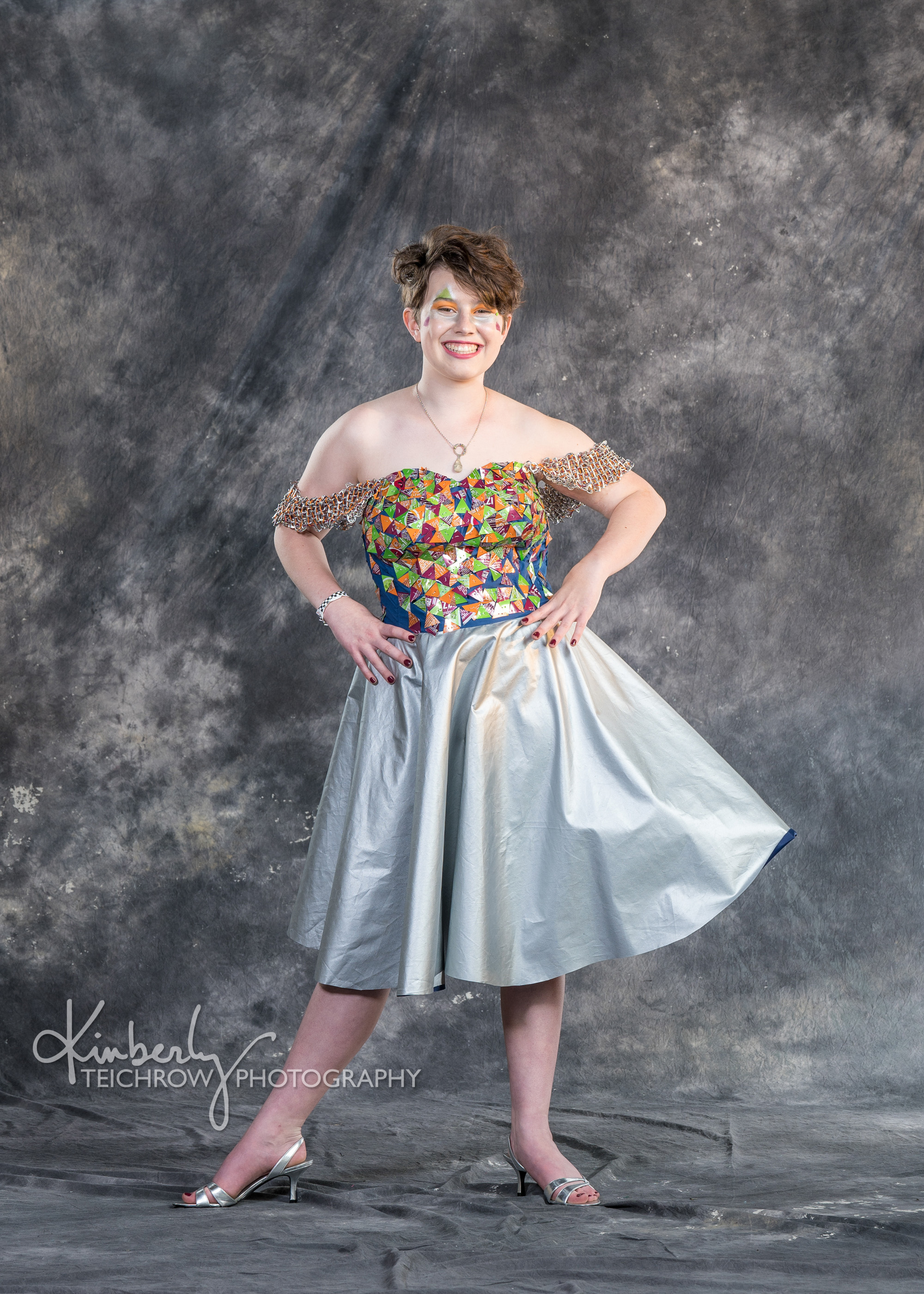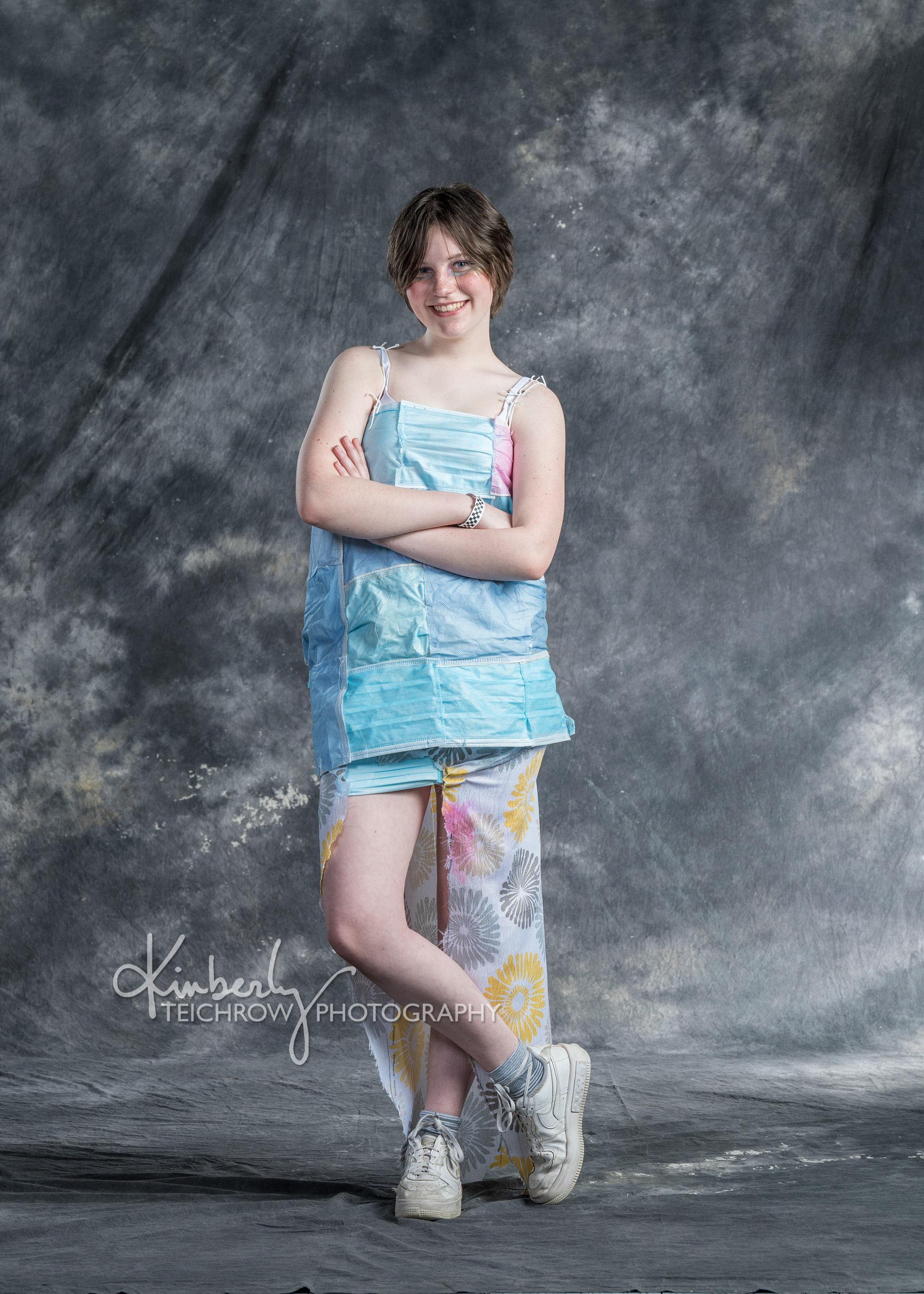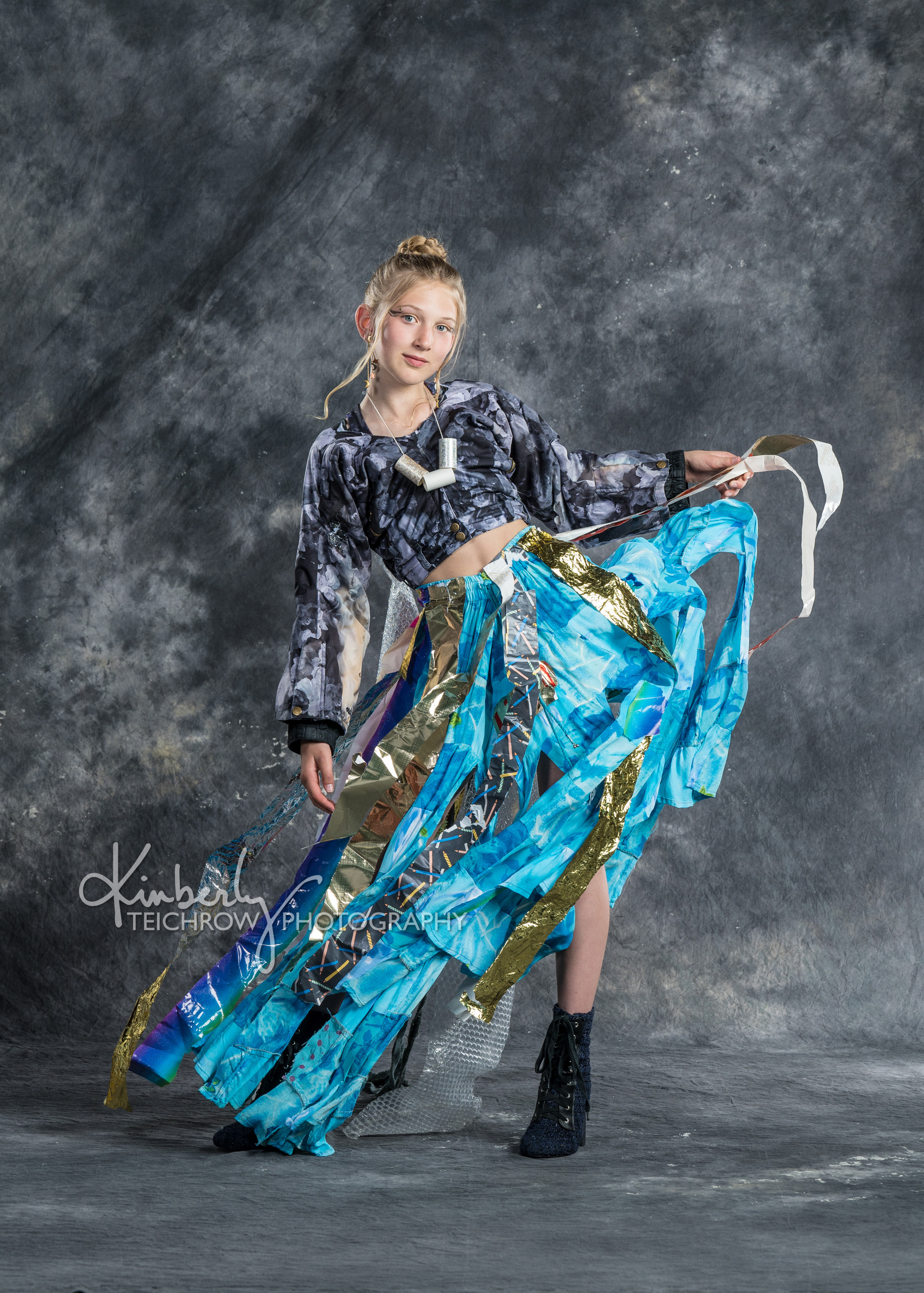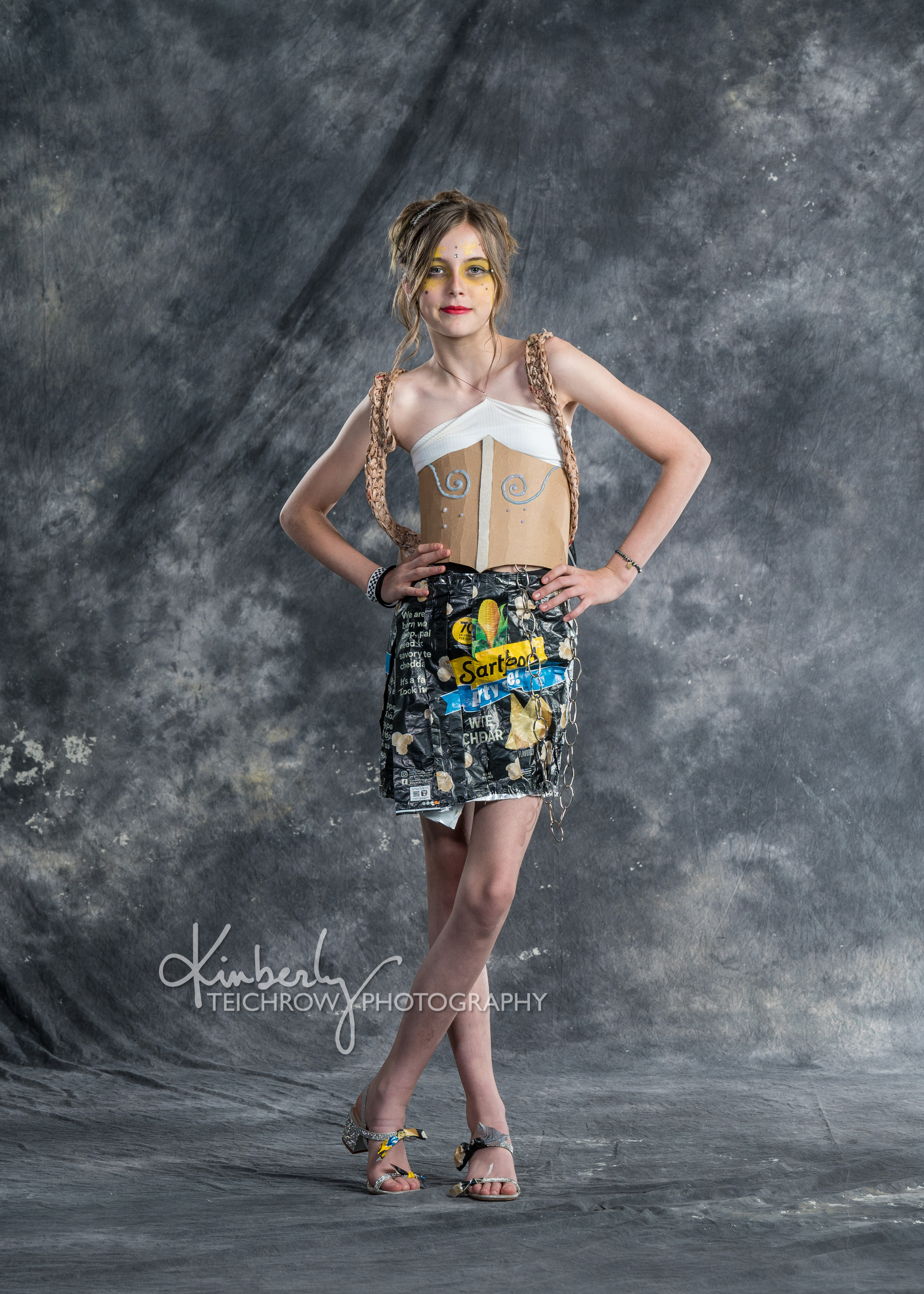 Designer/Model: Nevaeh Bennett Materials: Plastic garbage bag, bubble wrap, other disposable plastics – Realms Middle School