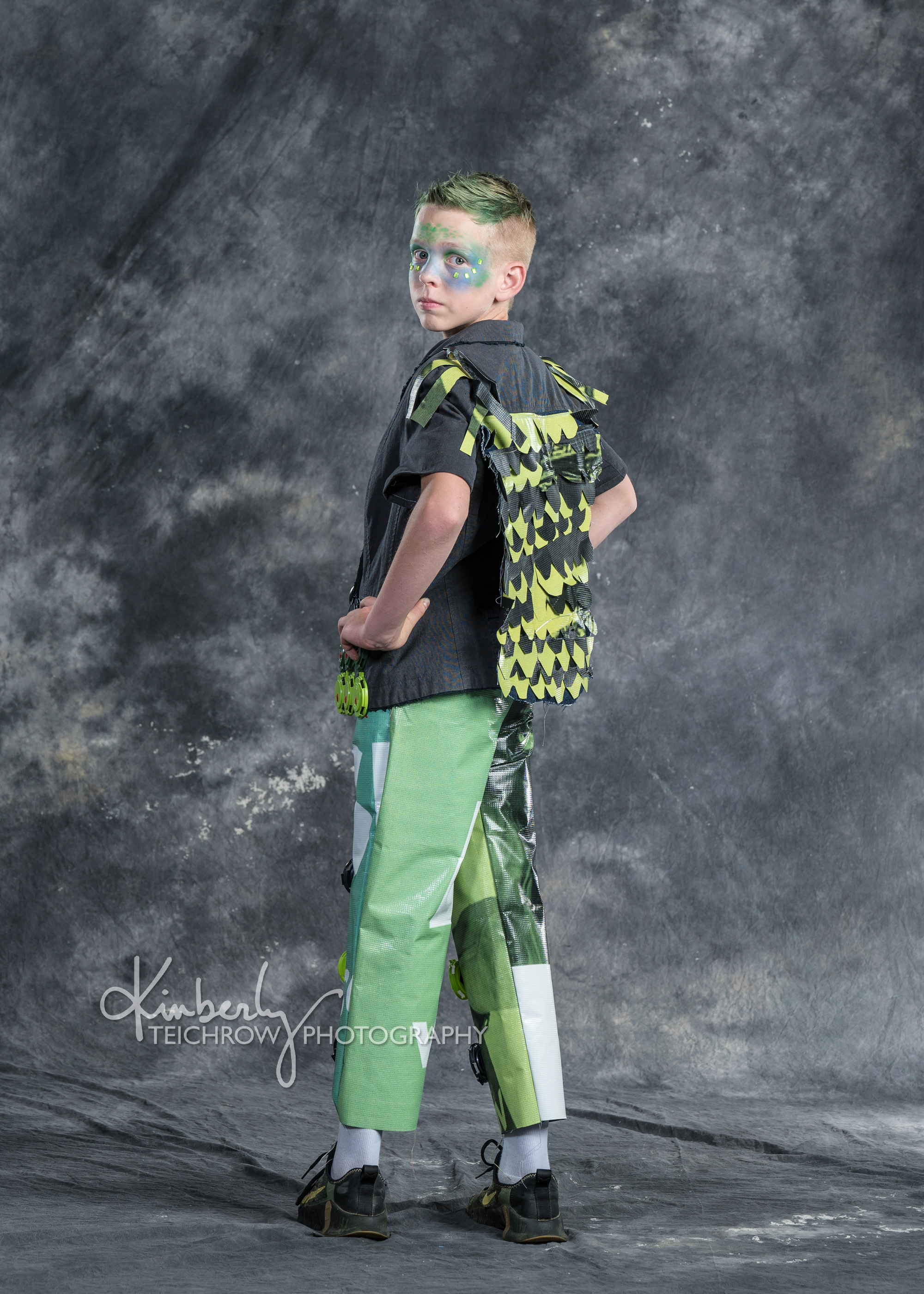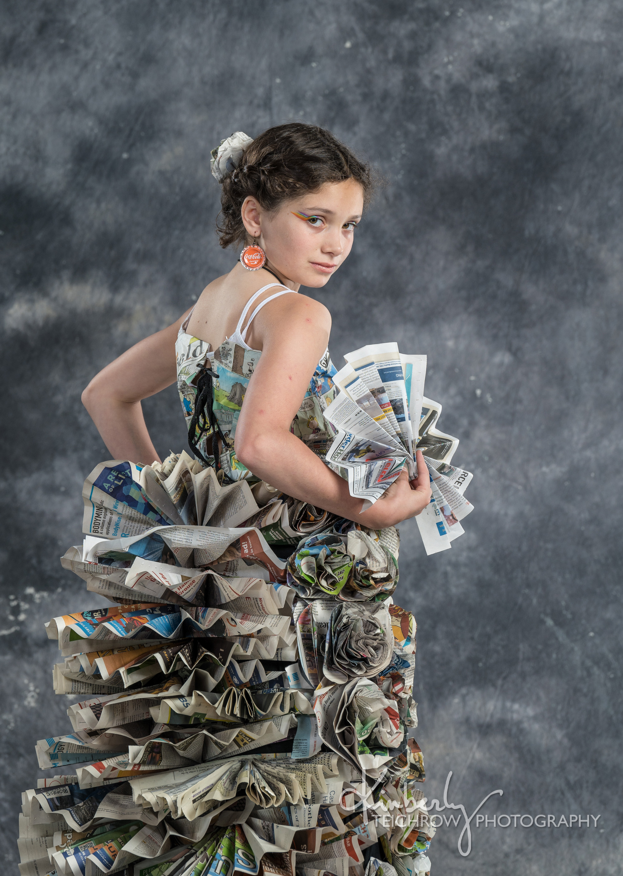 Designer: Nora Sites and Sam Press Model: Sam Press Materials: Newspaper, fabric scraps – Amity Creek Elementary
