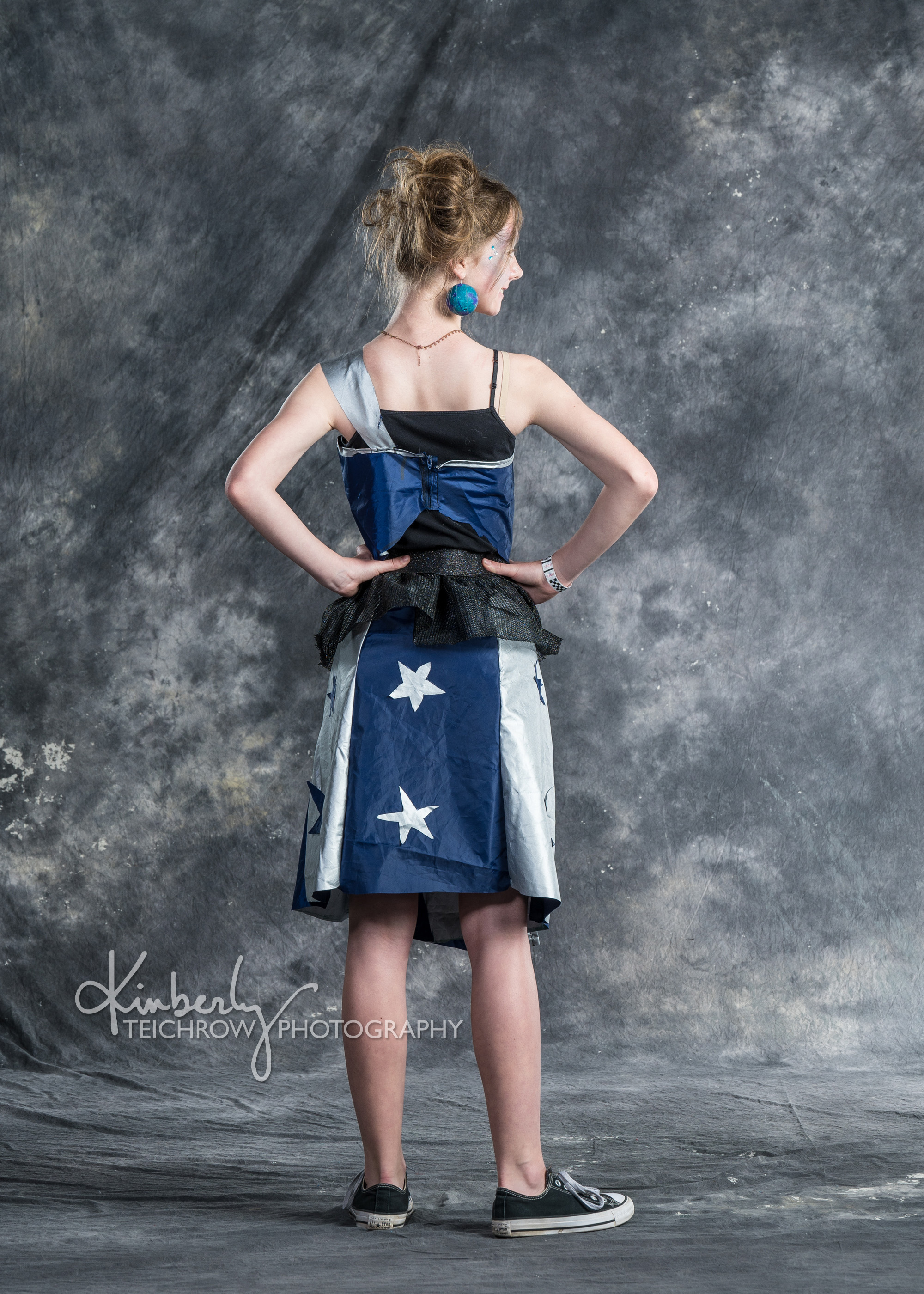 Designer/Model: Stevie Irvine Materials: Izzy cans, pull tabs, an old tent – Realms High School
