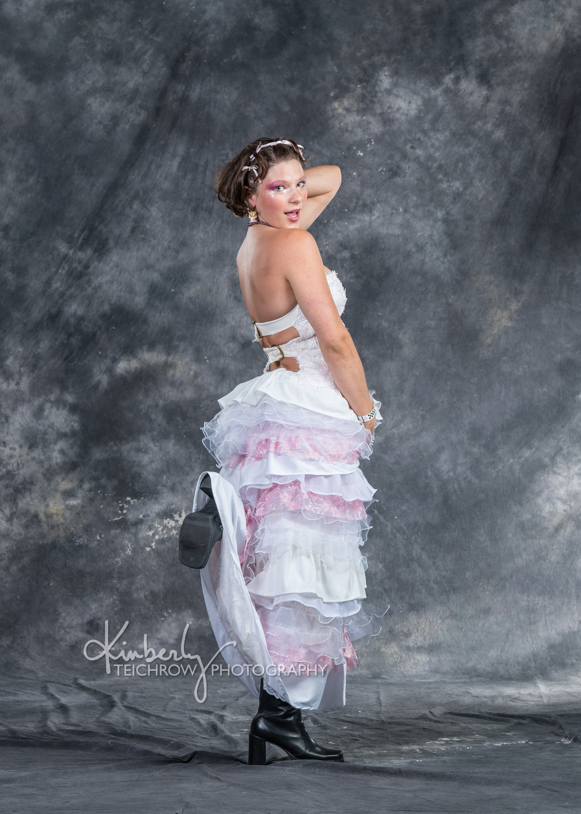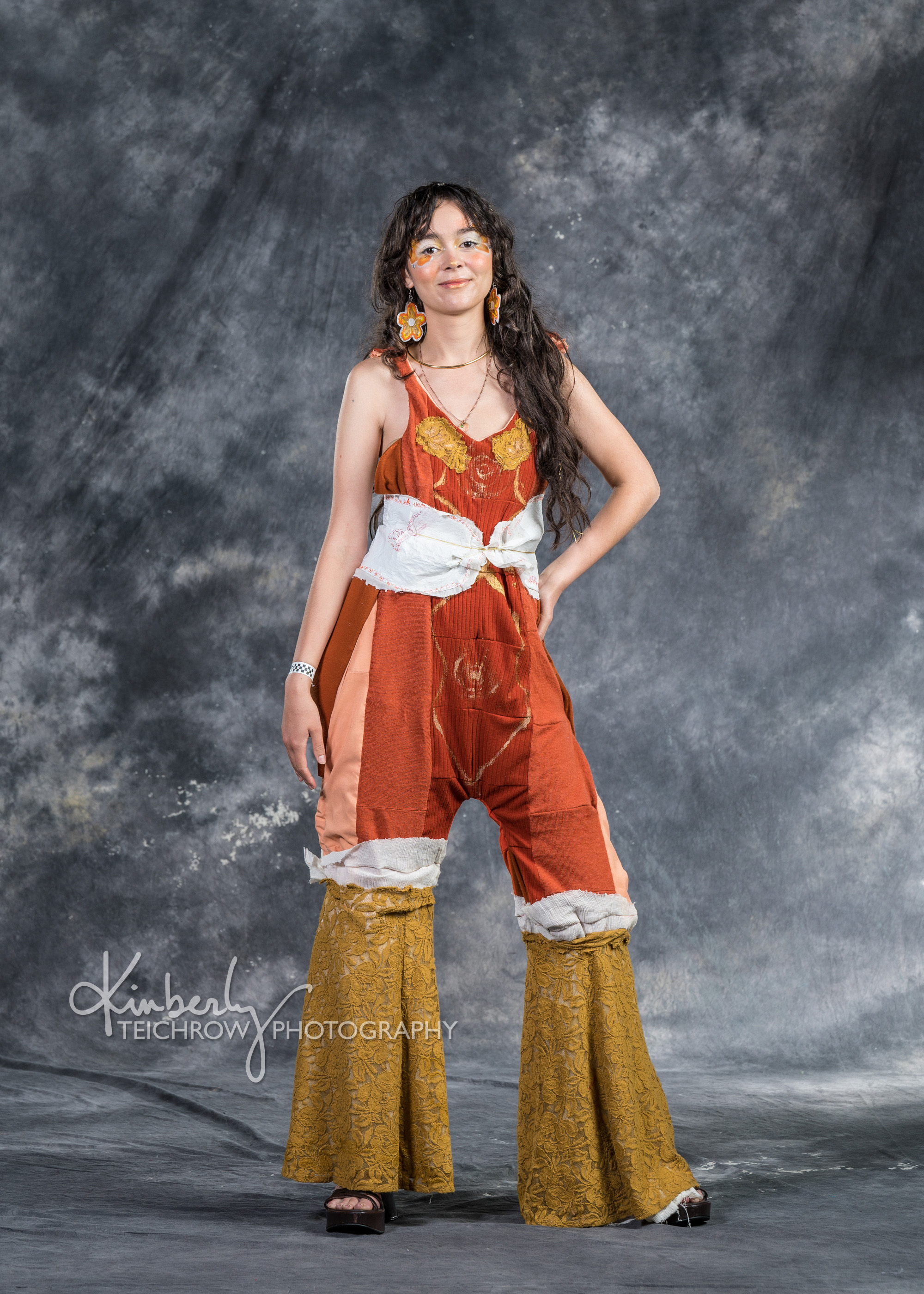 Designer/Model: Elliana Bowers Materials: Old denim, scrap/excess fabric, old lace tablecloths and curtains, old belt buckles – Summit High School